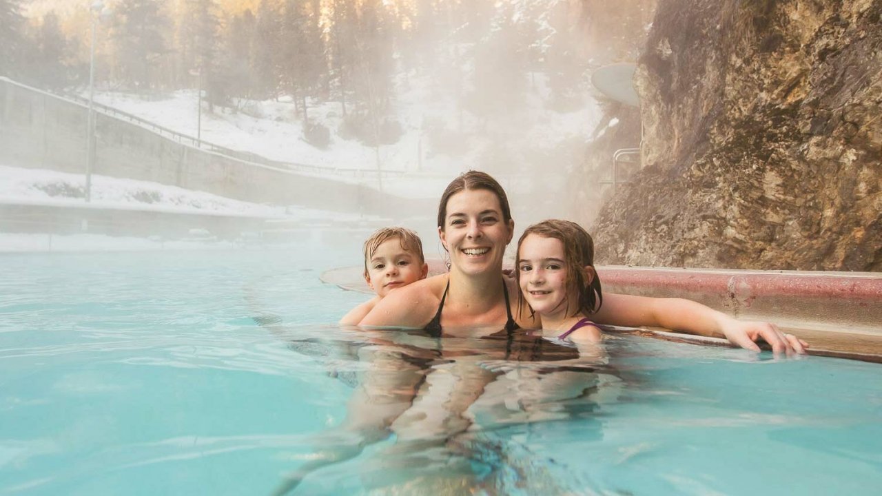 Relax and unwind in the mineral-rich water of the Radium Hot Springs pools.